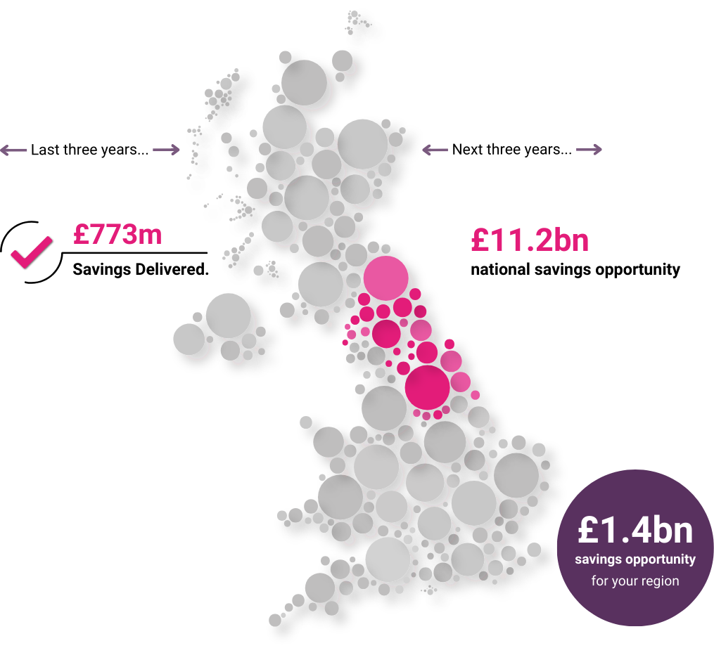 The data, intelligence and experience gathered over our 35 year history puts us in a unique position to identify £11.2bn of savings opportunities available to the NHS nationally over the next three years. Through our innovative services and partnership approach, we could save the North East and Yorkshire £1.4bn.