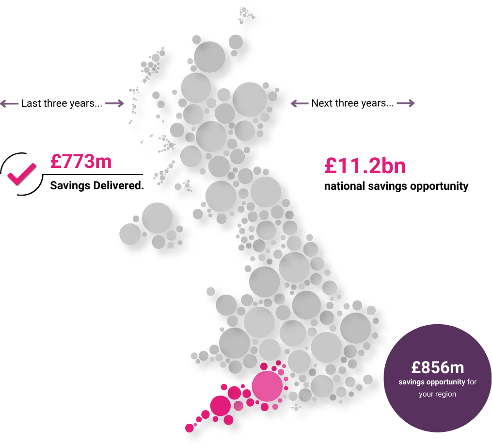 The data, intelligence and experience gathered over our 35 year history puts us in a unique position to identify £11.2bn of savings opportunities available to the NHS nationally over the next three years. Through our innovative services and partnership approach, we could save the South West £856m.